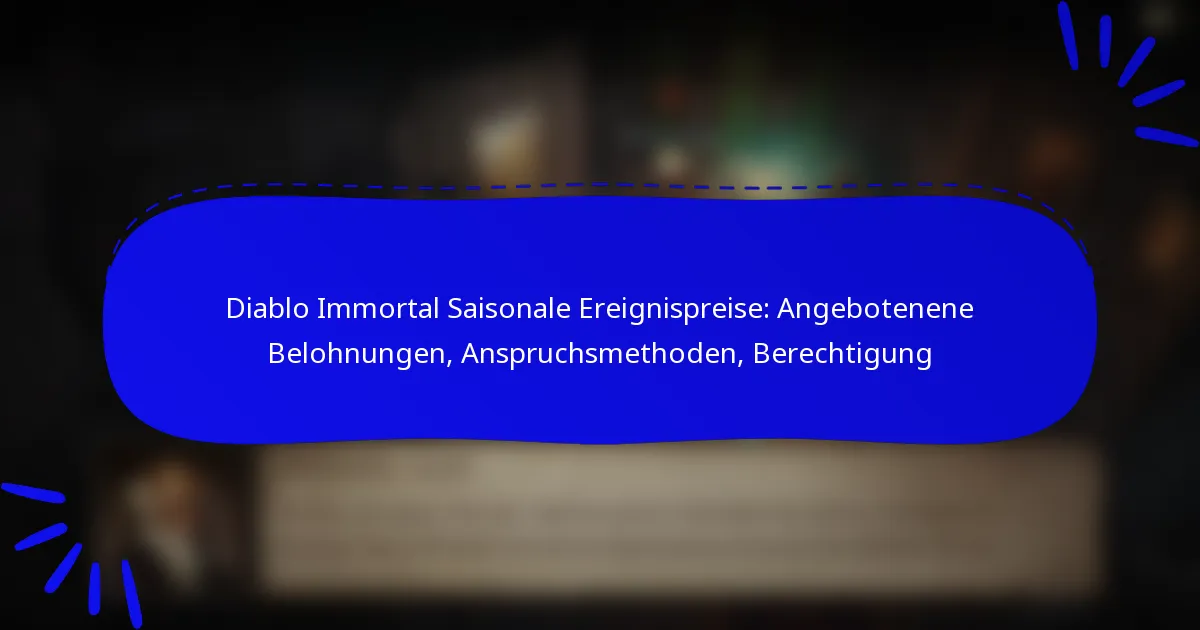 Diablo Immortal Saisonale Ereignispreise: Angebotenene Belohnungen, Anspruchsmethoden, Berechtigung
